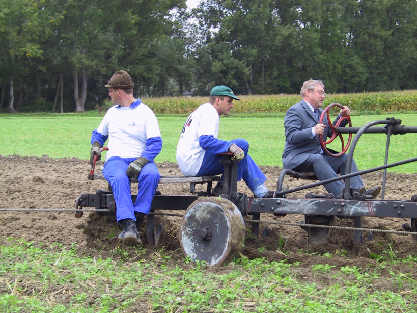 die Pflugmannschaft mitfährt. Ein Mann (in diesem Fall der bay. Staatsminister