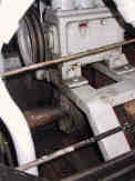 Da man weder Getriebe noch Motor verrücken kann, muß die Hardyscheibe, eine elastische Verbindung zwischen Welle und Getriebe, ausgebaut werden. Dann können durch den dadurch freigewordenen Zwischenraum die neuen Keilriemen gefädelt werden. Die Bolzen die die Hardyscheibe halten sind natürlich sehr fest, denn sie sollen im Betrieb nicht wegfliegen. Wir Hobbyeisenbahner haben die gutgemeinte Schätzung der Arbeitszeit eines Werkstattmeisters natürlich leicht überschritten. |