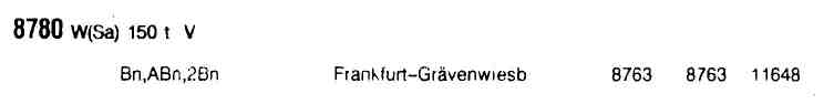 Erwähnenswert waren auch N 8762/N8771 die im Durchlauf von/nach Friedberg aus einer Wendezuggarnitur bestanden, anfangs noch mit einem sog. "Hasenkastensteuerwagen" (BDnf 738/739), später mit den Typen ohne Übergang (BDnf 740). Teilweise liefen auch noch wendezugfähige Mitteleinstiegswagen mit, dabei auch solche, die selbst einmal Steuerwagen waren (Bylb 422). Dieser Umlauf war im Sommerfahrplan 1985 übrigens der einzige mit 212 bespannte, alle anderen lokbespannten Züge wurden von 211 oder 216 gezogen. |