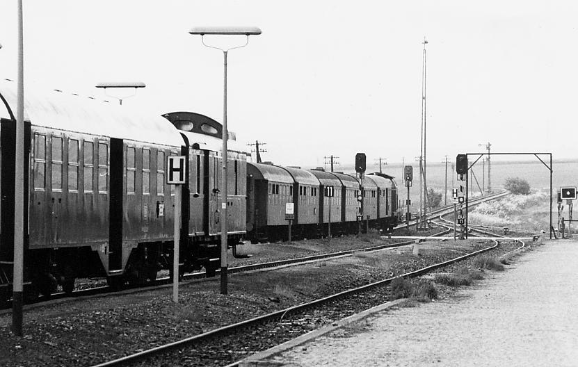Die übrigen Züge mussten durchweg mit zwei 2.Klasse-Wagen auskommen. Die "Silberling-Monotonie" der 80er ergriff nun auch von dieser Strecke Besitz. Aber es gab auch noch fallweisen Einsatz von Mitteleinstiegswagen. |