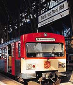Sieben Zugpaare verkehren von Montag bis Freitag zwischen Brandoberndorf und Frankfurt (Main) Hbf. Sie sind ab Friedrichsdorf praktisch Eilzüge und halten nur in Bad Homburg vor der Höhe, Oberursel (Taunus), Frankfurt-Rödelheim. Dieses Angebot wurde extra für die Berufspendler geschaffen, um ohne Umsteigen aus dem Taunus in die City zu gelangen. Weiter zum nächsten Halt Frankfurt-Rödelheim Bilder in der unteren Zeile © Fotogalerie der Hessischen Landesbahn (Download dort!) |