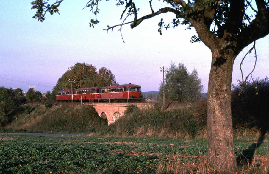 Hintergrund, ein VT 51 nach Usingen auf dem Viadukt über