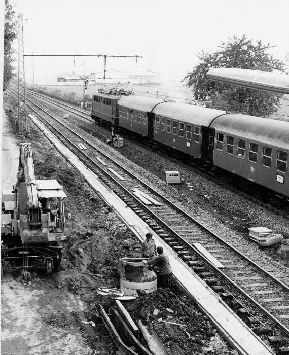 Bahnsteigbau in Weißkirchen. Der alte Mittelbahnsteig ich noch in