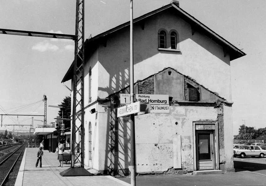 Weißkirchen hat ein Bahngebäud, nach hinten grenzt’s an Hessen,