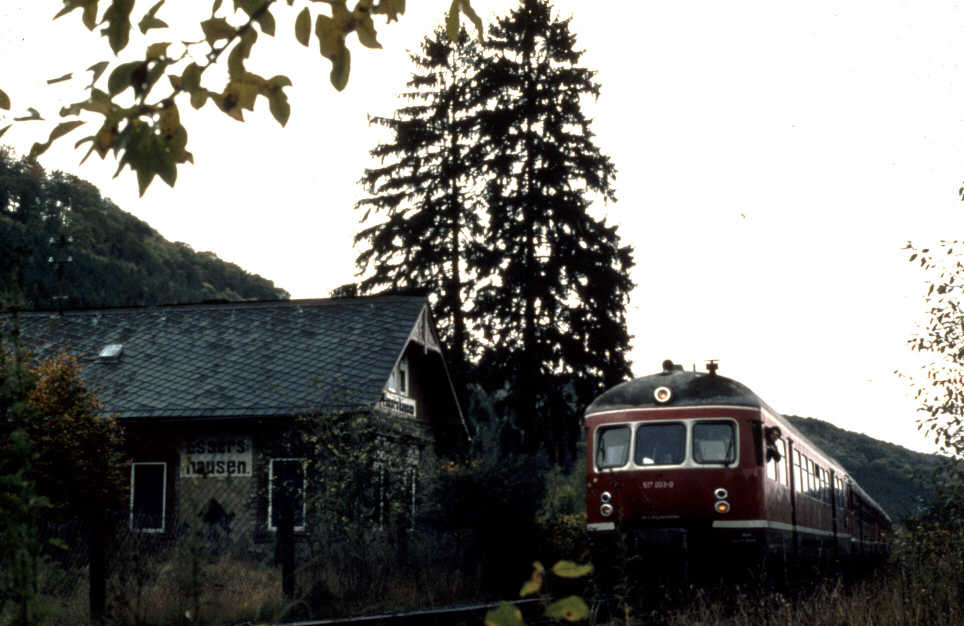 Zwischen Freienfels und Ernsthausen (Oberlahnkr.) lag bei km 5,8 auf Höhe 163,69 m ü. NN Essershausen. Zurück zur Weiltalbahn |