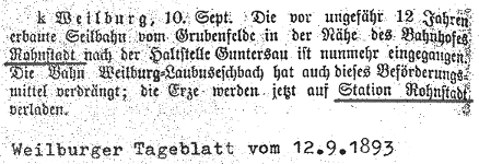 Zwischen dem Enpunkt der Stichstrecke in Laubuseschbach und dem Bf Weilmünster bei km 2,15 auf Höhe ? m ü. NN Rohnstadt (Oberlahnkreis). Zurück zur Weiltalbahn |